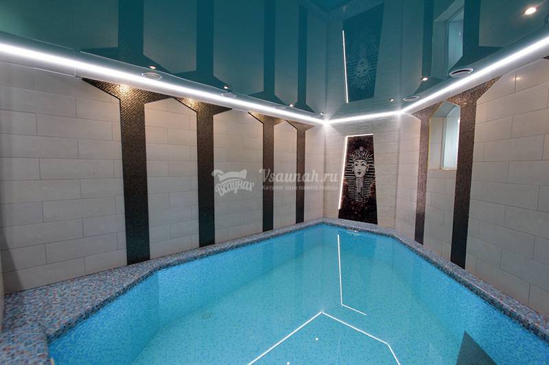 Бассейн, Размеры (Ш x Д x Г), м: 5 x 7 x 1.7, Теплый бассейн, Подсветка, Римская лестница,